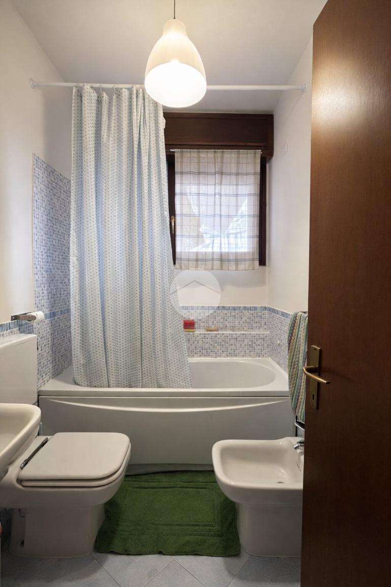 Un disimpegno, munito di ripostiglio e di un comodo allaccio per la lavatrice, introduce alla zona notte, che ospita una camera matrimoniale con armadio a quattro ante ed un bagno finestrato con piastrelline a mosaico, attrezzato con vasca/doccia.