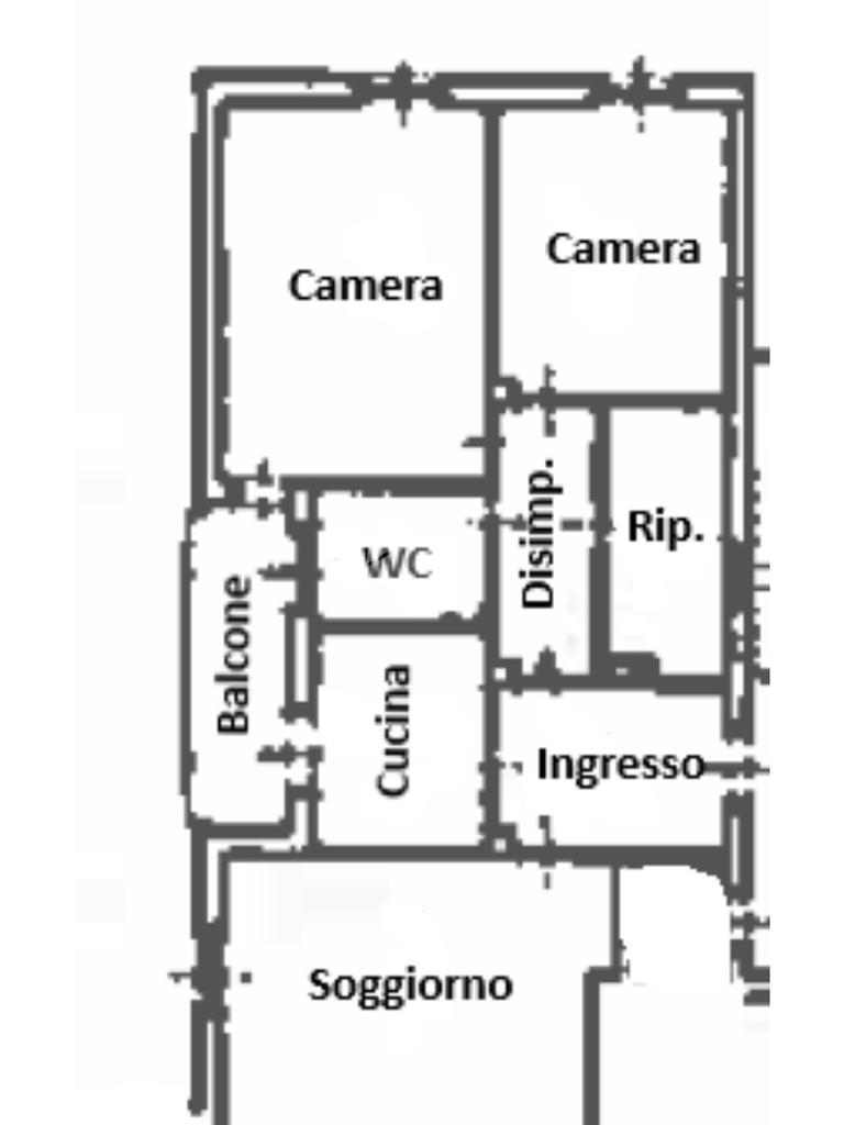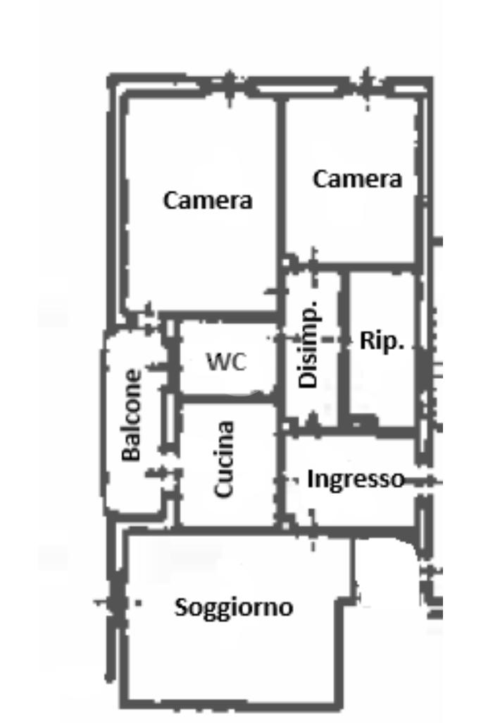 Appartamento al secondo piano di otto, servito da ascensore, di un complesso condominiale costruito alla fine degli Anni '60, circondato da verde comune e completato da posti auto liberi antistanti i lotti abitativi e da cantine.